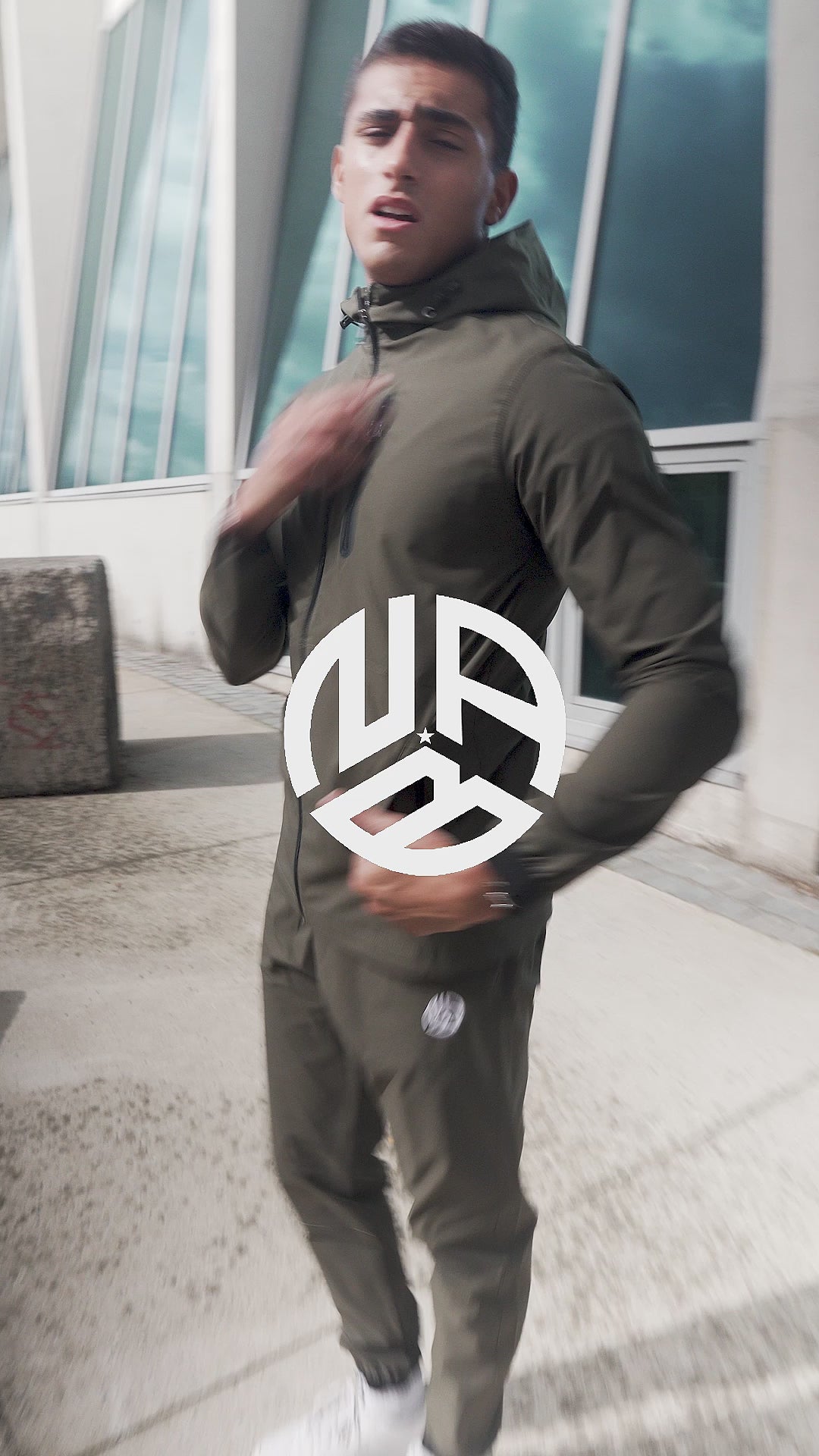 Avec sa coupe ajustée et ses détails minimalistes, il met en valeur une silhouette sportive tout en restant polyvalent. La veste à capuche et le pantalon assorti créent un total look vert, rehaussé par les logos blancs emblématiques de NAB.