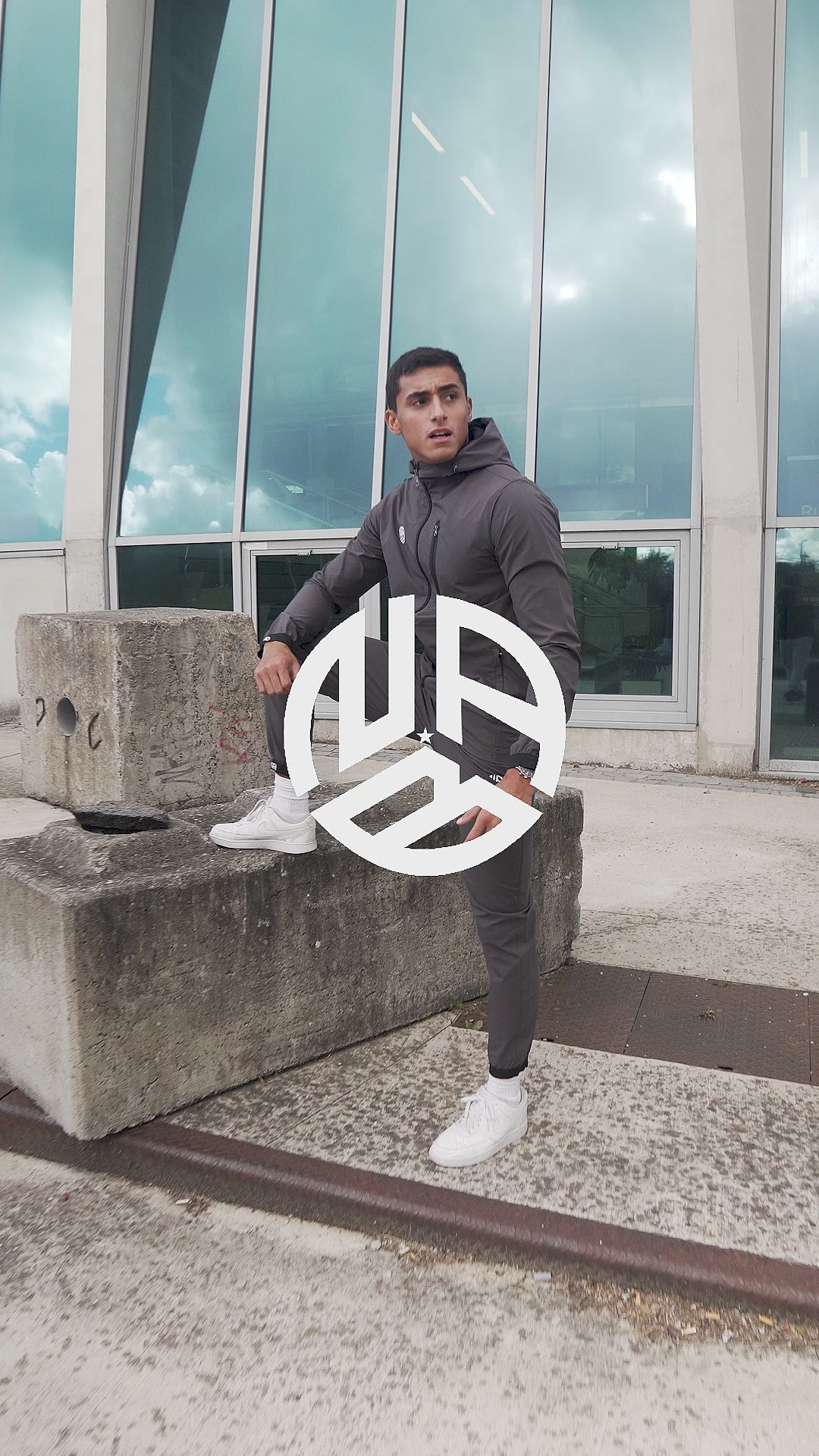 Avec sa coupe ajustée et ses détails minimalistes, il met en valeur une silhouette sportive tout en restant polyvalent. La veste à capuche et le pantalon assorti créent un total look gris, rehaussé par les logos blancs emblématiques de NAB.